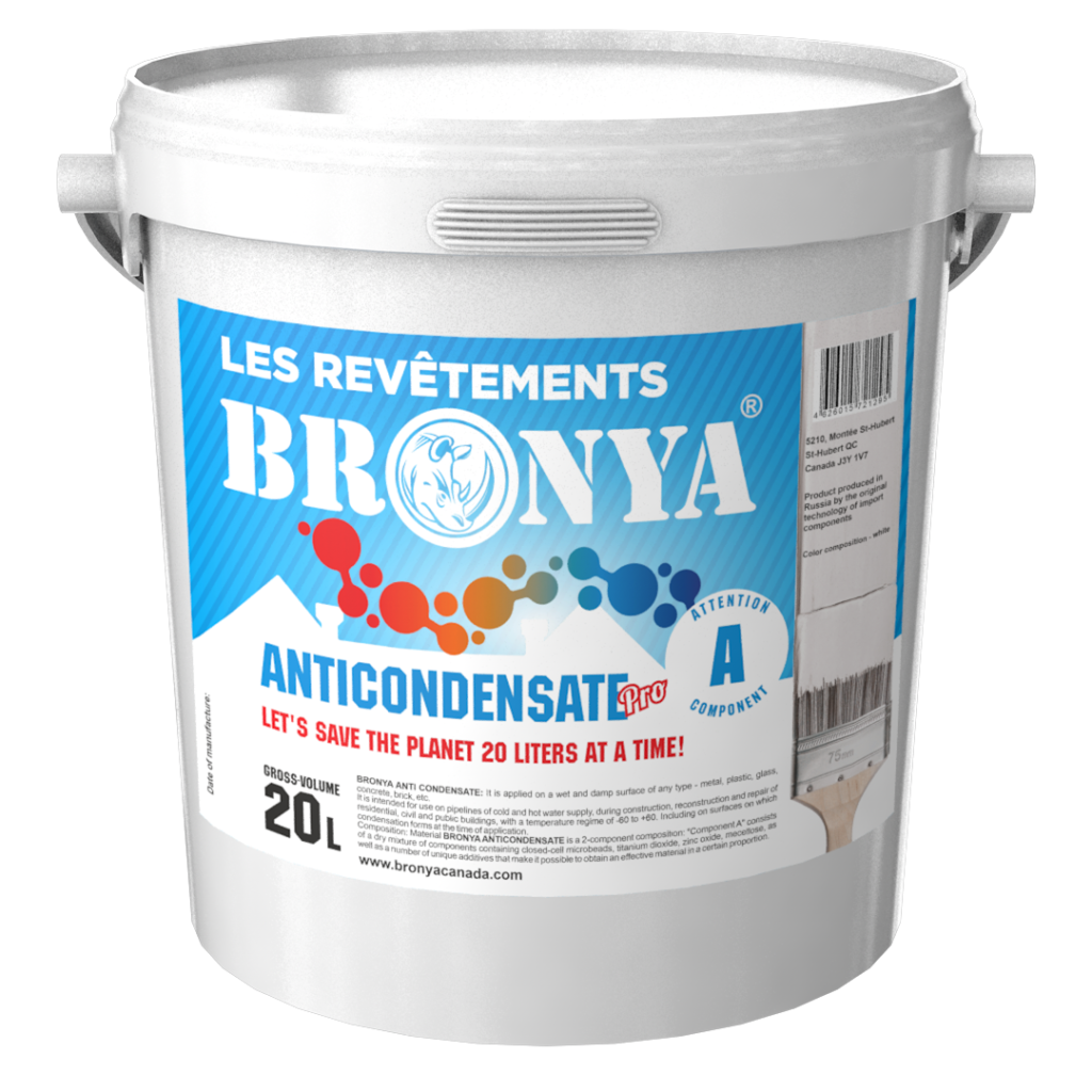 Bronya Anti-Condensation is a thermal insulation modification developed for use in industry, reconstruction and equipment repair. A unique material applied directly to damp and wet surfaces of pipelines and equipment of various shapes and configurations in operation when it is impossible to stop the technological process or supply fluids through pipelines. Bronya Anti-Condensation is an innovative solution to the problem of condensation on metal, glass, plastic and other surfaces of pipes and equipment. Prevents the accumulation and formation of humidity which, coming from surfaces covered with condensation, negatively affects the safety of equipment and items located in production, administrative and office premises. After using Bronya Anti-Condensation, this problem is completely eliminated, extending the life of pipes and equipment.